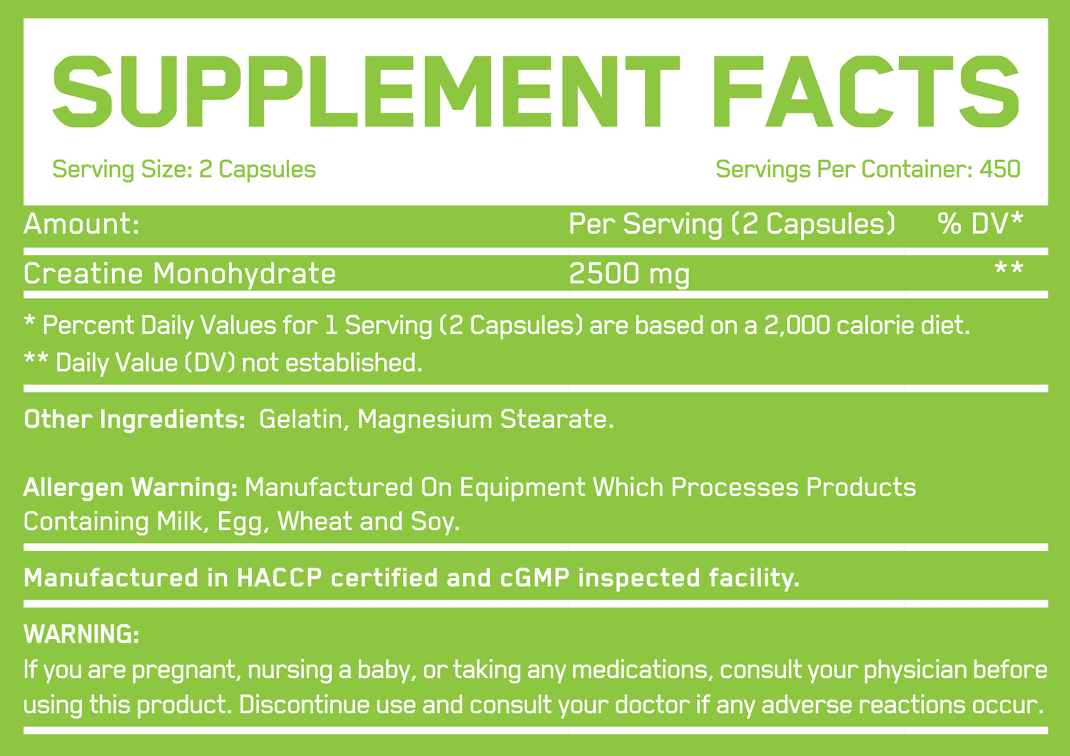 • Висока доза креатин монохидрат в доза (2500 mg)