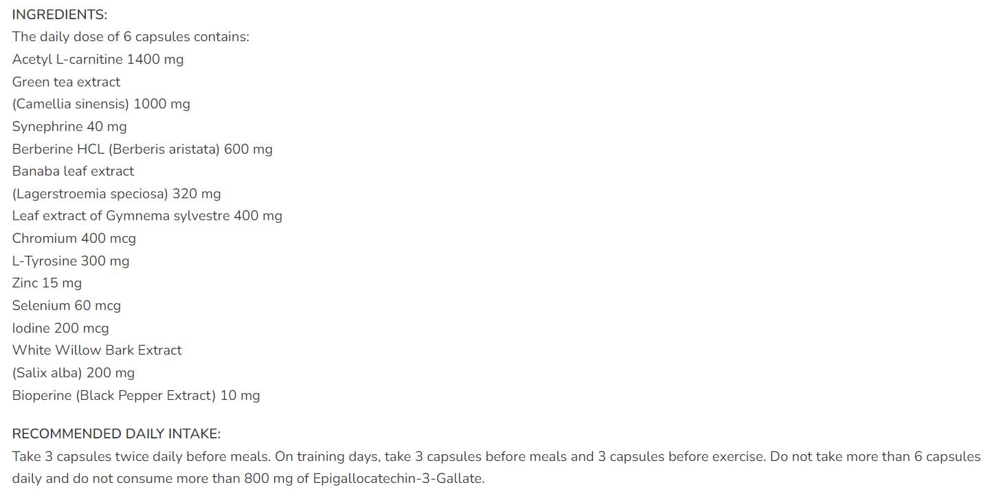• Синефрин: Подпомага термогенезата и увеличава енергията.