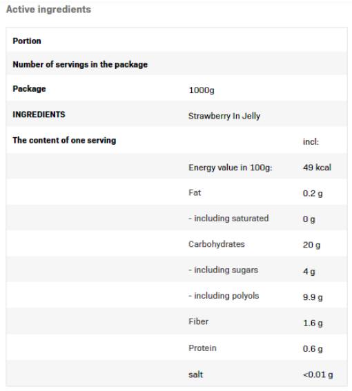 Внимание: Продуктът е предназначен за възрастни и деца над 3 години. Не се препоръчва за лица с алергии към ягоди или други съставки в продукта.
