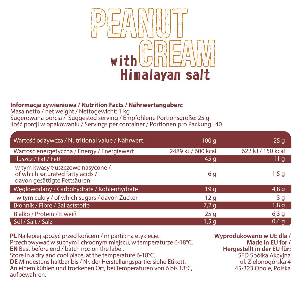 Кремът от фъстъци с хималайска сол е идеалният избор за всички, които търсят вкусна и питателна добавка към своята хранителна програма. Този продукт е с високо съдържание на протеини, което го прави отличен източник на енергия. Протеините са основни за изграждането и възстановяването на мускулите, особено след физическа активност.