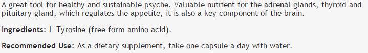Състав: Л-Тирозин (свободна форма на аминокиселина).