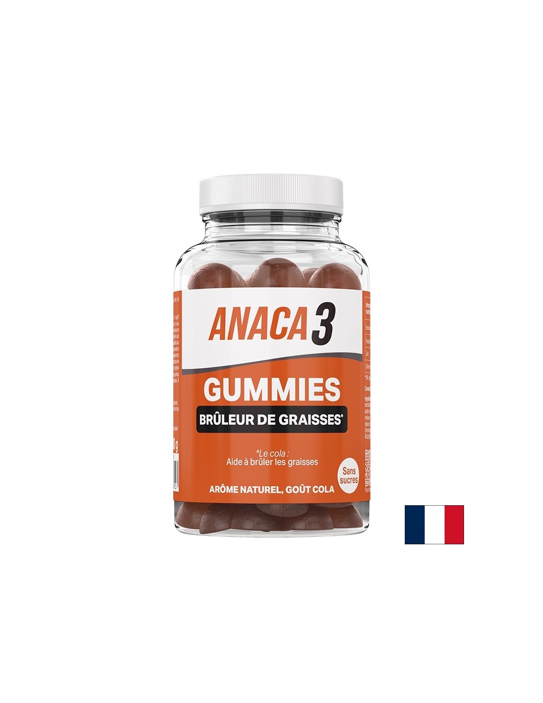 Anaca3 Gummies Brûleur de Graisses / Анака3 Формула за изгаряне на мазнини, 60 желирани таблетки е хранителна добавка на френската компания Nutravalia. Продуктът допринася за поддържане на нормалното телесно тегло, както и нормални нива на мазнини в организма.