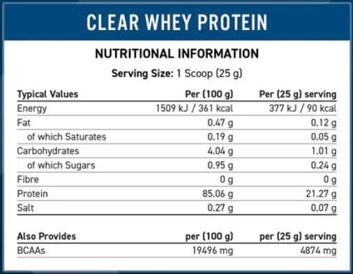 Clear Whey Protein е хранителна добавка с ултрахидролизиран суроватъчен протеин изолат, която предоставя над 21 g протеин на порция от 25 g, само 90 калории и ниско съдържание на въглехидрати и захар.
