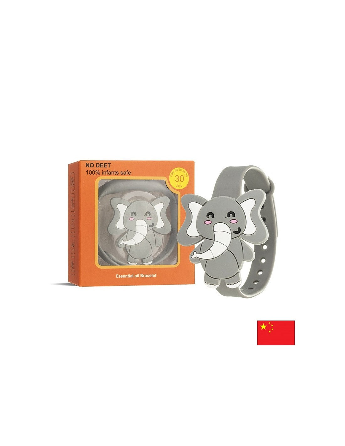 Гривна със слонче, съчетаваща забавен дизайн и ефективна защита от комари. Съдържа 100% натурални етерични масла – лимонова трева/цитронела, лавандула, мента и чаено дърво – за спокойствие и свежест навън и у дома