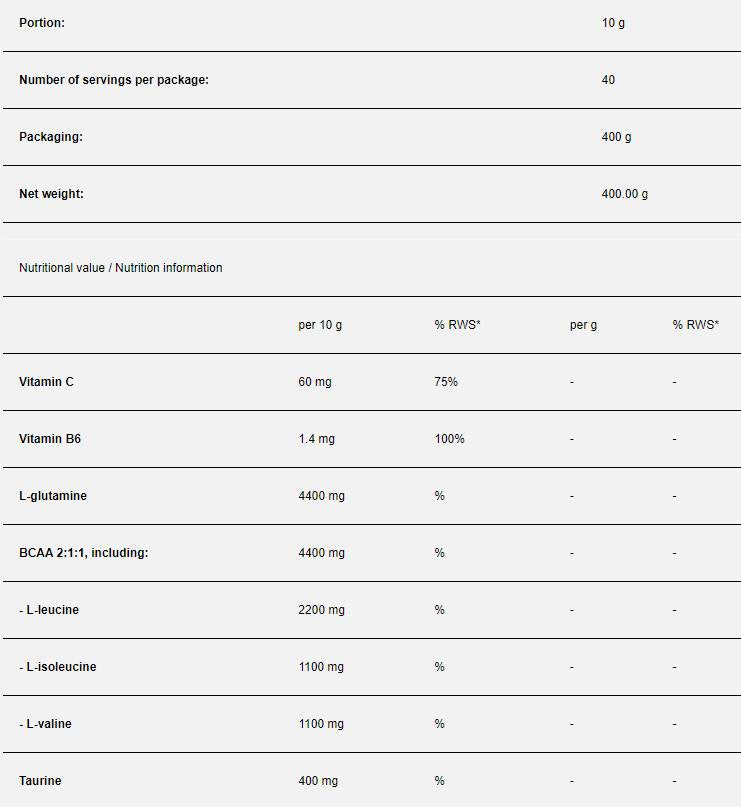 Muscle Guard е суплемент с отличен състав, подходящ както за прием преди тренировка, така и за след нея. Съдържа ефективна доза висококачествени ВСАА и глутамин. С тази комбинация, всяка доза от продукта ускорява мускулното възстановяване и помага да се понижи негативния ефект, който се получава след тренировка (мускулна болка и мускулна треска). Продуктът определено се справя страхотно в ускоряването на следтренировъчното възстановяване. Съдържа и добавка от важни съставки – комплекс от витамини, цитрулин малат и таурин. Инстантна формула за отлична разтворимост.