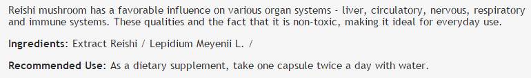 Състав: Екстракт от Рейши (Lepidium Meyenii L.)