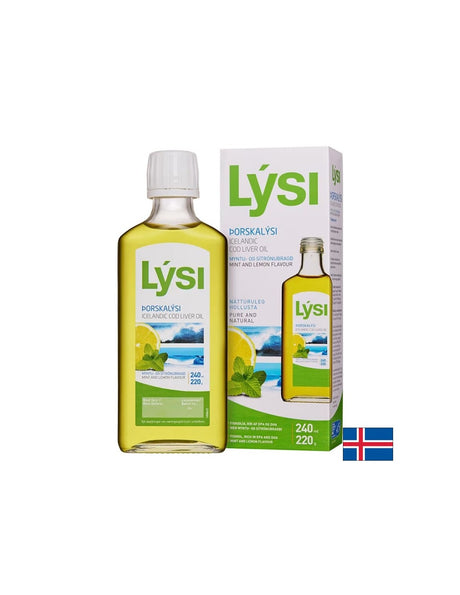 Омега-3 – масло от черен дроб на исландска риба треска - Осигурява витамини А & D3, 2160 mg, 240 ml с вкус на лимон и мента