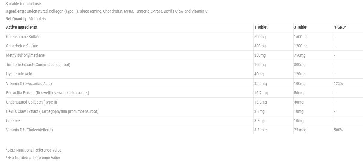 Комплексната комбинация от колаген тип II, глюкозамин, хондроитин и MSM работи synergistically за подобряване на подвижността и намаляване на напрежението в ставите. Натуралните екстракти куркума, босвелия и дяволски нокът допринасят за намаляване на възпалението, докато хиалуроновата киселина осигурява по-добра смазка и по-лесно движение. Добавеният витамин D3 допринася за здрави кости и мускулно-скелетна поддръжка. Без добавена захар и глутен, продуктът е чист и безопасен за ежедневна употреба.