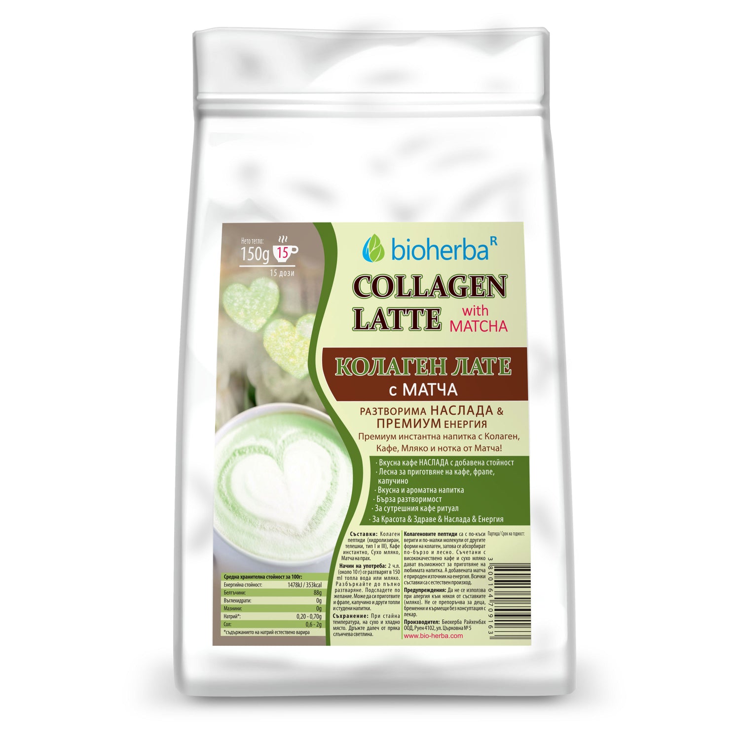 КОЛАГЕН ЛАТЕ с МАТЧА е премиум инстантна напитка, която комбинира колаген, кафе и матча за енергия, красота и наслаждение.
