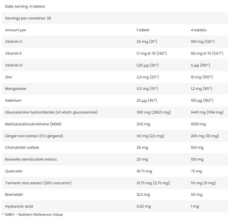 Тази сложна комбинирана формула осигурява не само ключови и доказани съставки за стави и хрущяли, но и едни от най-добрите природни екстракти с доказани биоактивни компоненти.