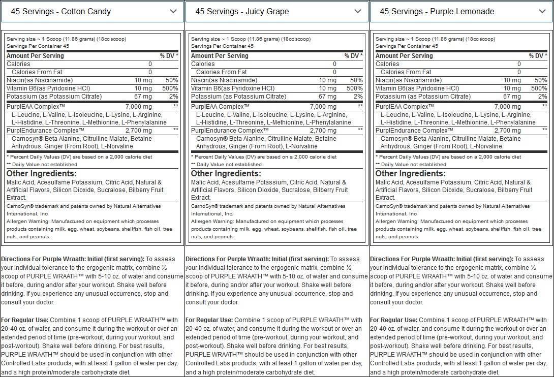 Научни изследвания показват, че приемането на незаменими аминокиселини (EAA) увеличава синтеза на протеини в мускулите, което е от съществено значение за растежа и възстановяването. Аминокиселините в Purple Wraath се усвояват значително по-бързо от стандартния суроватъчен протеин, което го прави изключително ефективен. Формулата включва: