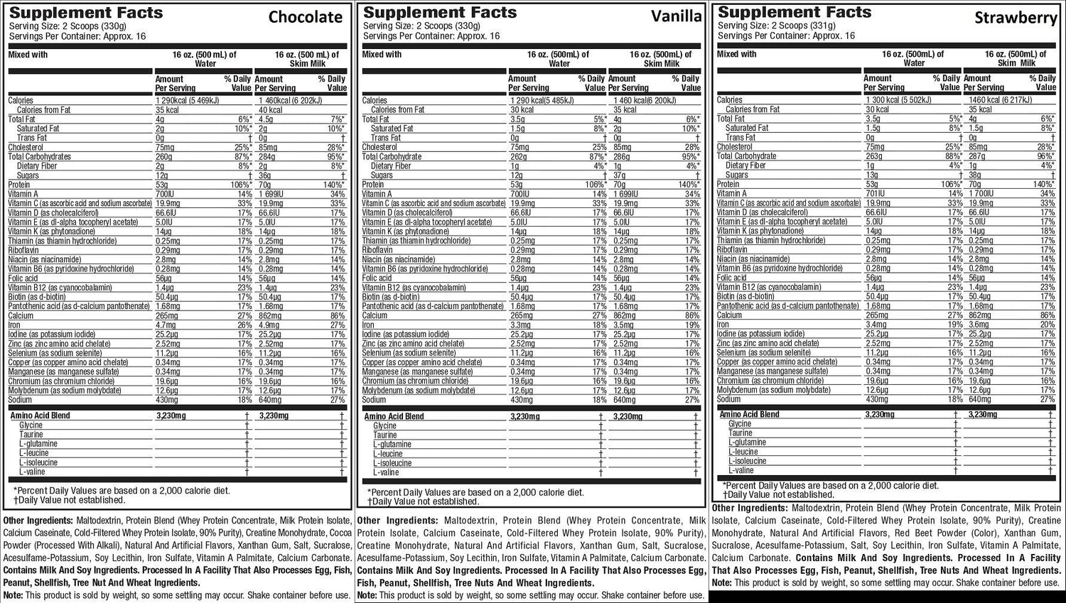 100% Premium Mass Gainer ви помага да отговорите на вашата нужда от калории, като ви предоставя внишителните 1270 калории, включително 50 грама висококачествен протеин и 261 грама въглехидрати за енергия във всяка доза. Той включва с основните минерали, пълен спектър от аминокиселини и напреднали съединения, доказали в научни изследвания, че помагат за изграждането на мускулната маса и сила.