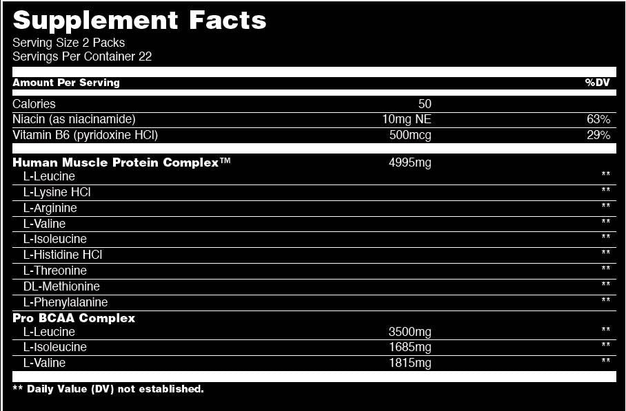 Всеки един пакет съдържа 6000mg от (HMPC). Веднъж погълнати, те образуват „голям хап”, който подсигурява черния дроб. Това доказва неговото жизнено важно значение, което осигурява урея и изхвърляне на непотребните вещества от организма. Веднъж преминал през черния дроб този „голям хап” влиза в нормалнат циркулация на организма, където аминото може да прояви своето силно и мощно действия за освобождавене на енергия и да достави повече Продукта е на вашите мускули. Също така допринася за чистото натрупване на мускулна маса, благодарение на своята помощ към протеиновия синтез и баланс!