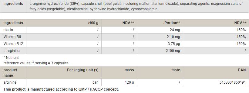 ARGININ - условно незаменима аминокиселина, превръщаща се в такава при състояния на стрес и някои здравословни проблеми. В комбинация с Ornithin и Lysinе е затвърдила славата си сред спортистите на „разпределител на хормона на растежа”.