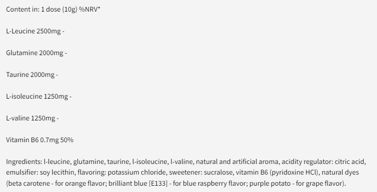 Всяка порция от BCAA Sport осигурява доза от 5000 мг от най-качествените аминокиселини в разклонена верига в най-оптималното, клинично и научно препоръчано съотношение 2:1:1. Неговите чисти, фармацевтични съставки се произвеждат чрез ферментация. Те са инстантни, не съдържат алергени и са обогатени с глутамин и таурин за по-добро представяне и по-висока ефективност при многоспортна употреба. Въпреки че BCAA (левцин, изолевцин и валин) са широко признати като градивни елементи на протеина, не всеки знае, че човешкото тяло не може да ги произвежда самостоятелно. Уникалността на BCAA, за които се смята, че съставляват до една трета от мускулния протеин и които са част от 9-те незаменими аминокиселини (НЗА), които не се синтезират в човешкото тяло, а се доставят с храната или добавките, се състои в това, че от всичките 20 основни аминокиселини тези три се метаболизират директно в мускулите, а не в черния дроб. Това означава, че те допринасят съществено за скоростта на мускулното развитие и възстановяване и играят ролята на гориво и източник на енергия за мускулите. Те са отговорни и за изпращането на "анаболен сигнал" благодарение на способността на мускулите да ги разграждат. Тази синергия подпомага издръжливостта чрез създаването на глюкоза - гориво, което е особено полезно, когато източникът на въглехидрати е изчерпан, като по този начин се създава незабавен анаболен ефект за борба с катаболното разграждане.