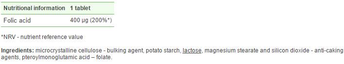 Фолиева киселина 400 µg е хранителна добавка под формата на таблетки, съдържаща фолиева киселина.
