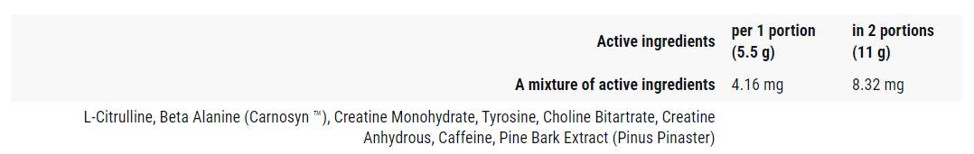 Начин на употреба: 1,2 до 3 лъжички 30-45 минути преди тренировка. За хора, чувствителни към стимуланти - 1 до 1,5 лъжичка. Препоръчително е да се започне от една лъжичка за да прецените индивидуалния си толеранс към продукта.
