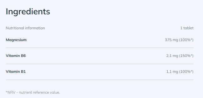 Съставки: Магнезий, Витамин В1, Витамин В6