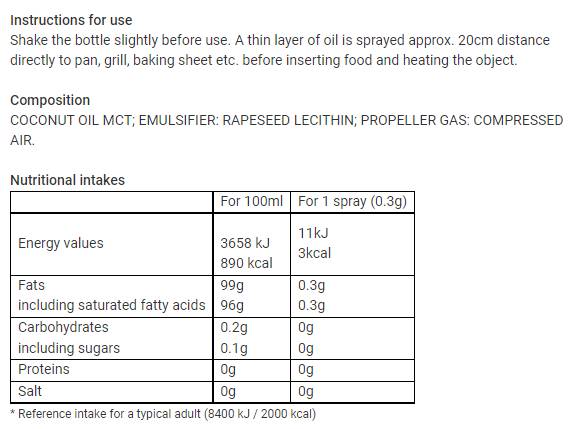 • 100% натурални съставки: Създаден от висококачествени кокосови масла, нашият спрей е без добавени химикали и консерванти, което го прави идеален за здравословно хранене.