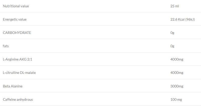 Важно е да се подчертае, че продуктът е предназначен за употреба от здрави възрастни, и не се препоръчва за лица с предишни здравословни проблеми или за тези, които са чувствителни към кофеин или подобни стимуланти. Препоръчителната доза е 1 шот (25 мл), който трябва да се приема 30-60 минути преди тренировка.