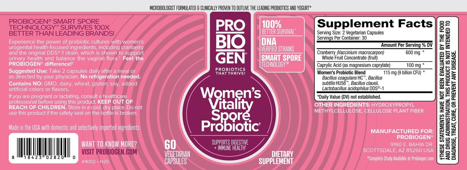 Изпитайте предимството на Probiogen! Пробиотикът Women`s Vitality Probiotic, подсилени с хранителни вещества, насочени към здравето на жените. Пробиотиците повишават усвояването на хранителните вещества и осигуряват храносмилателната им и имунна система.