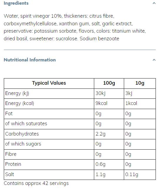 Нашият Zero® Calorie Caesar Dressing Flavour Sauce е изключително кремообразен и богат, с перфектната комбинация от солена лимонова доброта, която превръща всяка салата в незабравимо ястие. Този почти нулев калориен сос с аромат на дресинг Цезар има способността да трансформира дори листа от маруля в нещо невероятно. Сега можете да преобразите всяка салата с този невероятно ароматизиран сос, тъй като е без глутен, без мазнини, без млечни продукти, подходящ е за вегани и можете да му се наслаждавате всеки ден.