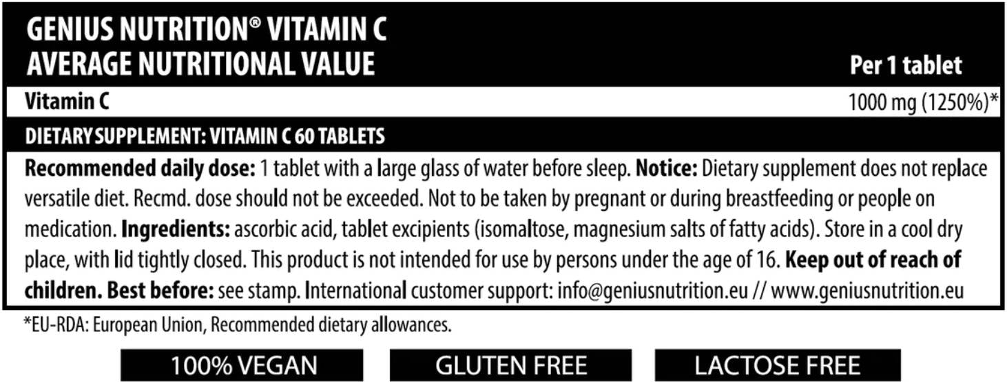 Можете да приемате витамин С от Genius Nutrition® ежедневно, без риск от странични ефекти или взаимодействия с други лекарства.