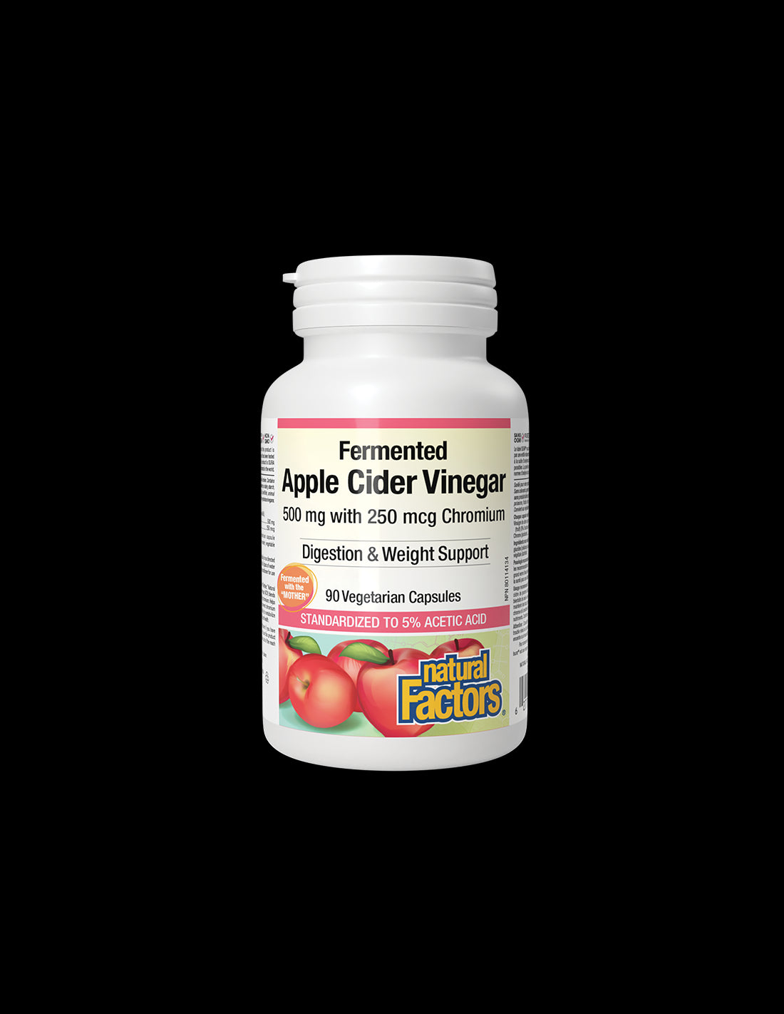Всяка капсула съдържа 500 mg органичен ябълков оцет в комбинация с хром от 250 mcg за поддържане на доброто здраве. Натурална форма на Natural Factors не съдържа изкуствени консерванти, оцветители, млечни продукти, нишесте, захар, пшеница, глутен, дрожди, соя, яйца, риба, черупчести, животински продукти, сол, ядки и ГМО.