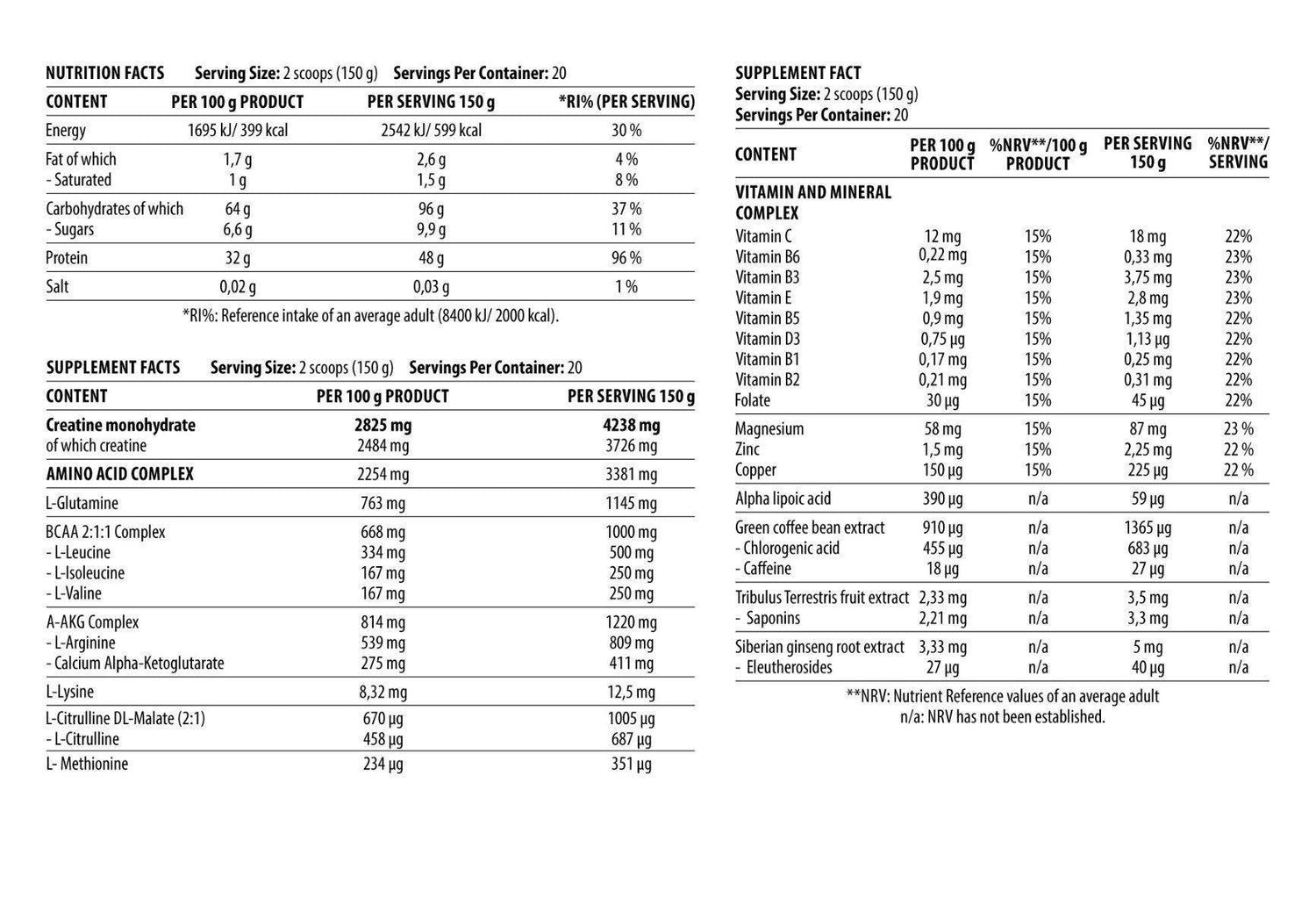 • ➡ Включени BCAA (разклонени аминокиселини) за оптимално представяне и мускулен растеж.