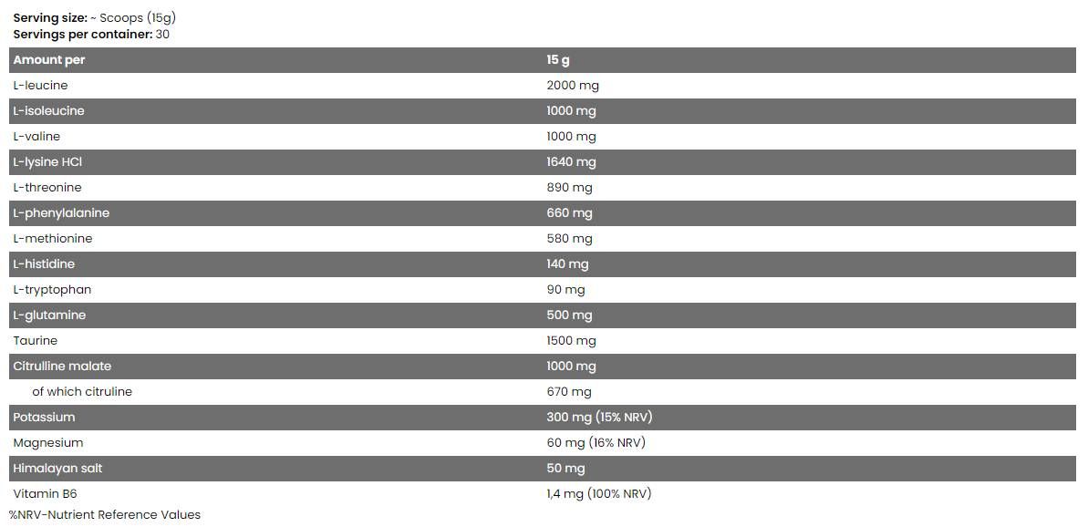 Core Amino е отлична хранителна добавка на базата на фармацевтично чисти форми на аминокиселини. Съставът му се основава на незаменими аминокиселини, аминокиселини с разклонена верига, магнезий, витамин В6, калий и хималайска сол.