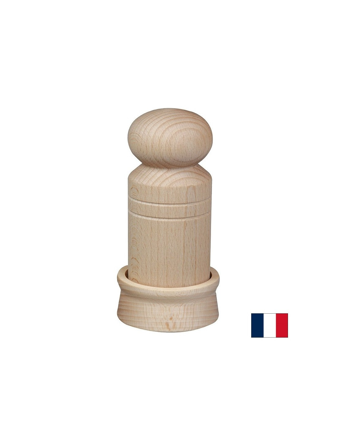 Пресата за изработка на саксии е направена от висококачествена букова дървесина, която е известна със своята здравина и издръжливост. Използваната дървесина има FSC сертификат, което гарантира, че тя е добита от отговорно управлявани гори, без негативно влияние върху околната среда. Буковата дървесина е устойчива на механично износване и не отделя вредни вещества, което я прави напълно безопасна за работа с почва и растения. Благодарение на нейната твърдост, пресата запазва формата си дълго време и може да се използва години наред.