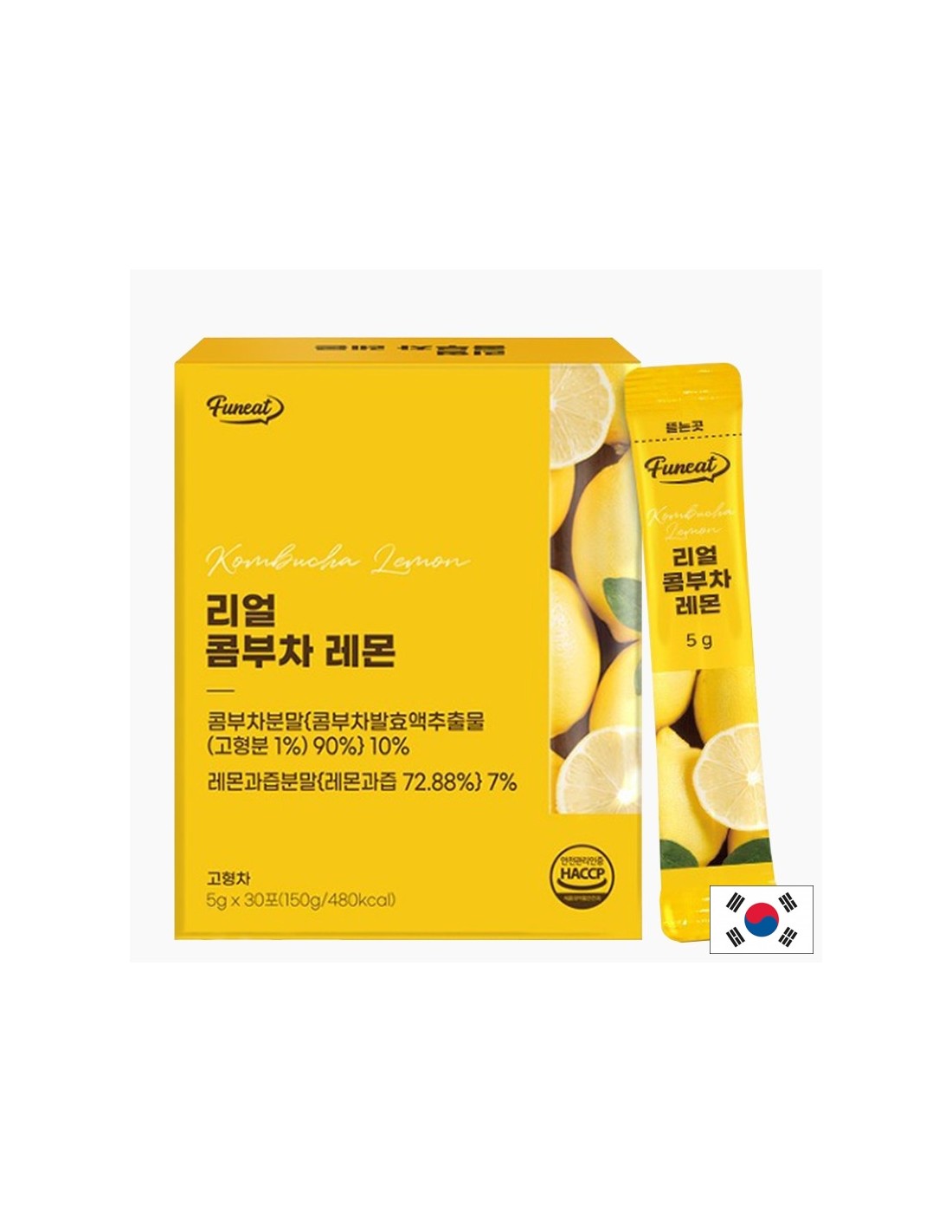 Съставки: Лимонена киселина, натриев бикарбонат, еритритол (18.39%), прах от ферментирал комбуча екстракт, ферментирал бананов екстракт (Израел), декстрин, прах от лимонов сок (САЩ), фруктозен сироп, ароматизанти (лимон), екстракт от хибискус (съдържа стевия), сукралоза, малтодекстрин, млечнокисели бактерии (17 вида), сукралоза, малтодекстрин, млечнокисели бактерии.