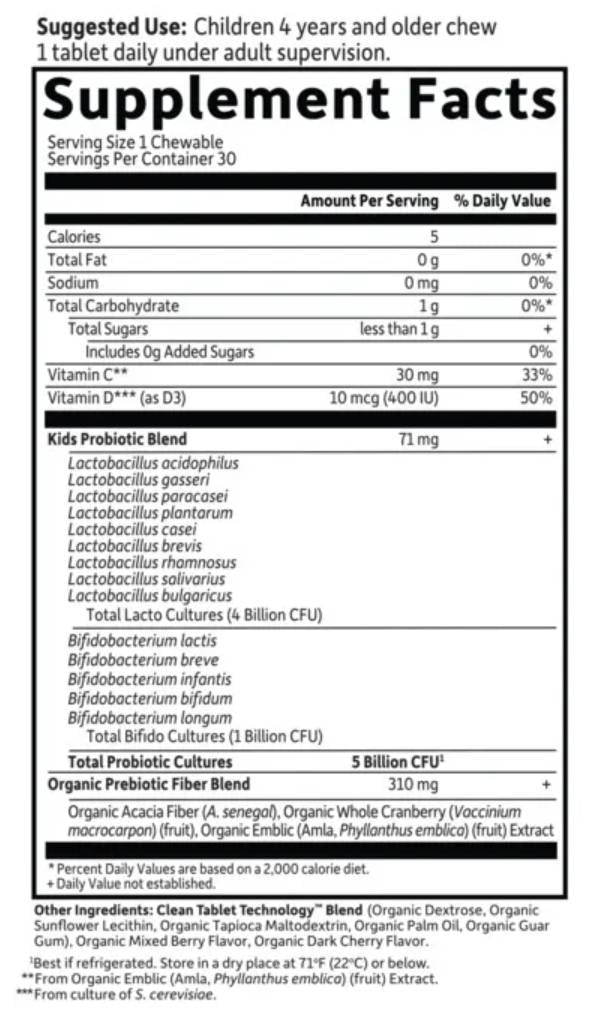 Dr. Formulated Probiotics Organic Kids+ - 30 Дъвчащи таблетки