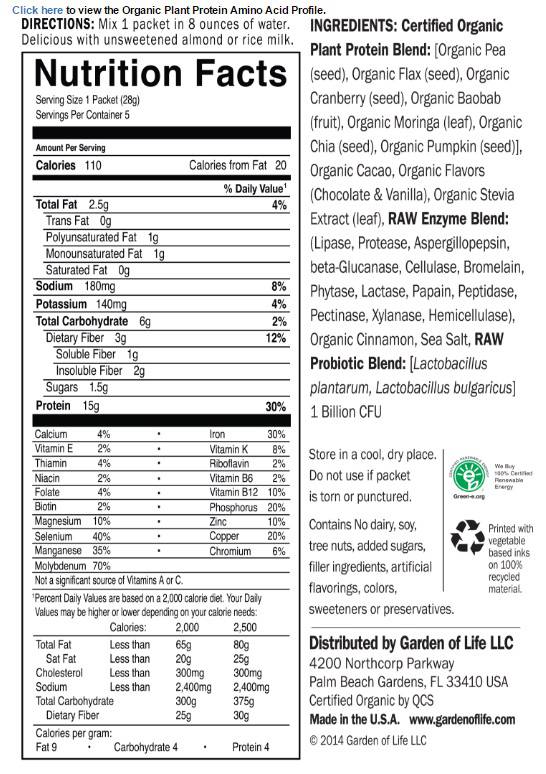 Органичният растителен протеин на Garden of Life е отличен източник на белтъчини и съдържа всички незаменими аминокиселини. В една препоръчителна порция от продукта се съдържат 15 г протеин или 30% от препоръчителния дневен прием. Той е подходящ за всеки, които иска да увеличи консумацията на белтъчини в режима си на хранене.