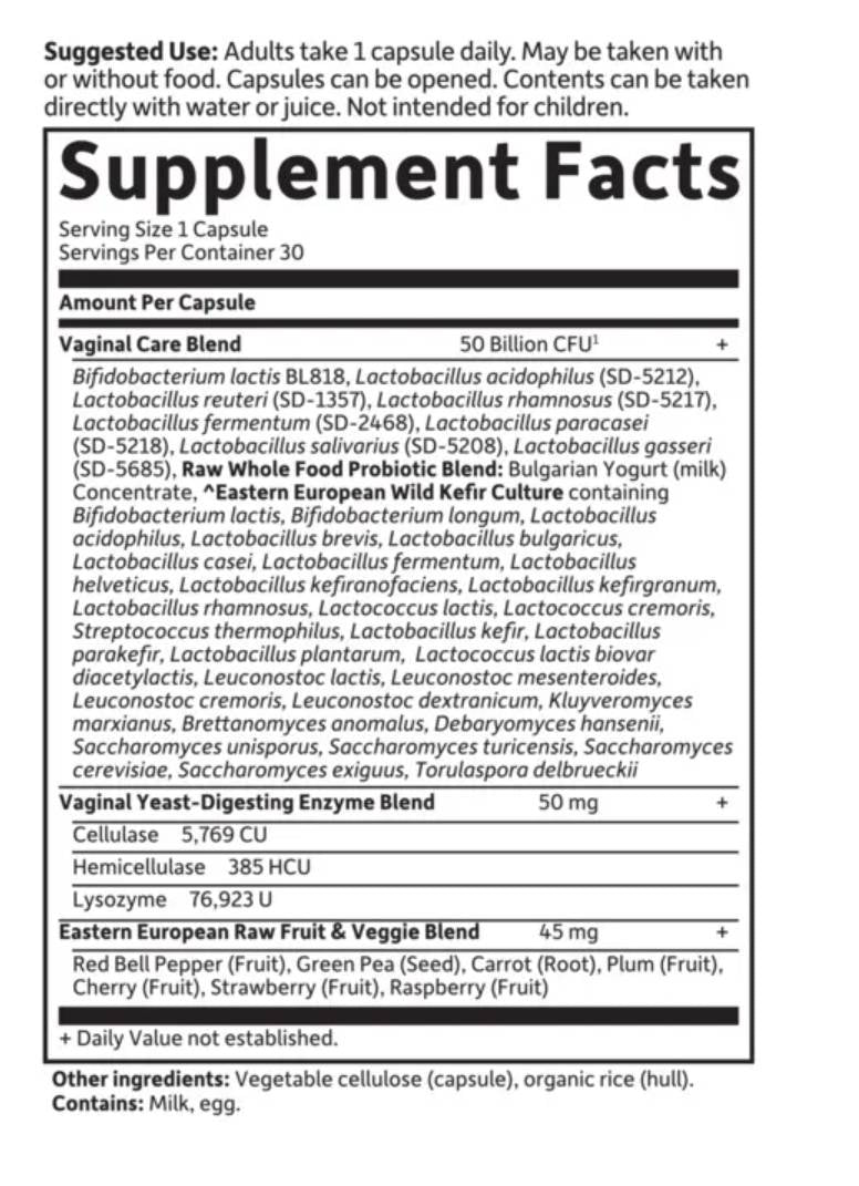 Сурови пробиотици Vaginal Care - високоефективен, суров, пълноценен пробиотик със смес Vaginal Care Blend за насърчаване на баланса на дрождите, здравето на вагината и пикочните пътища.