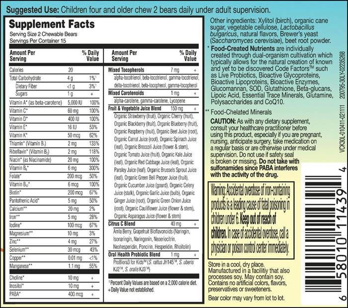 Vitamin Code® Kids съдържа ProBiora3 for Kids™, пробиотици, които се намират в устата на здраво дете, заедно с 22 органично отгледани плодове и зеленчуци , и подпомага: