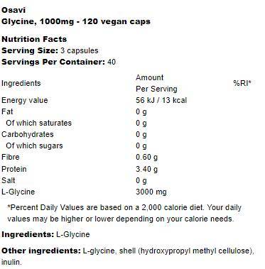 Glycine 1000 mg е хранителна добавка под формата на капсули, която подпомага синтеза на протеини и функционирането на нервната система.