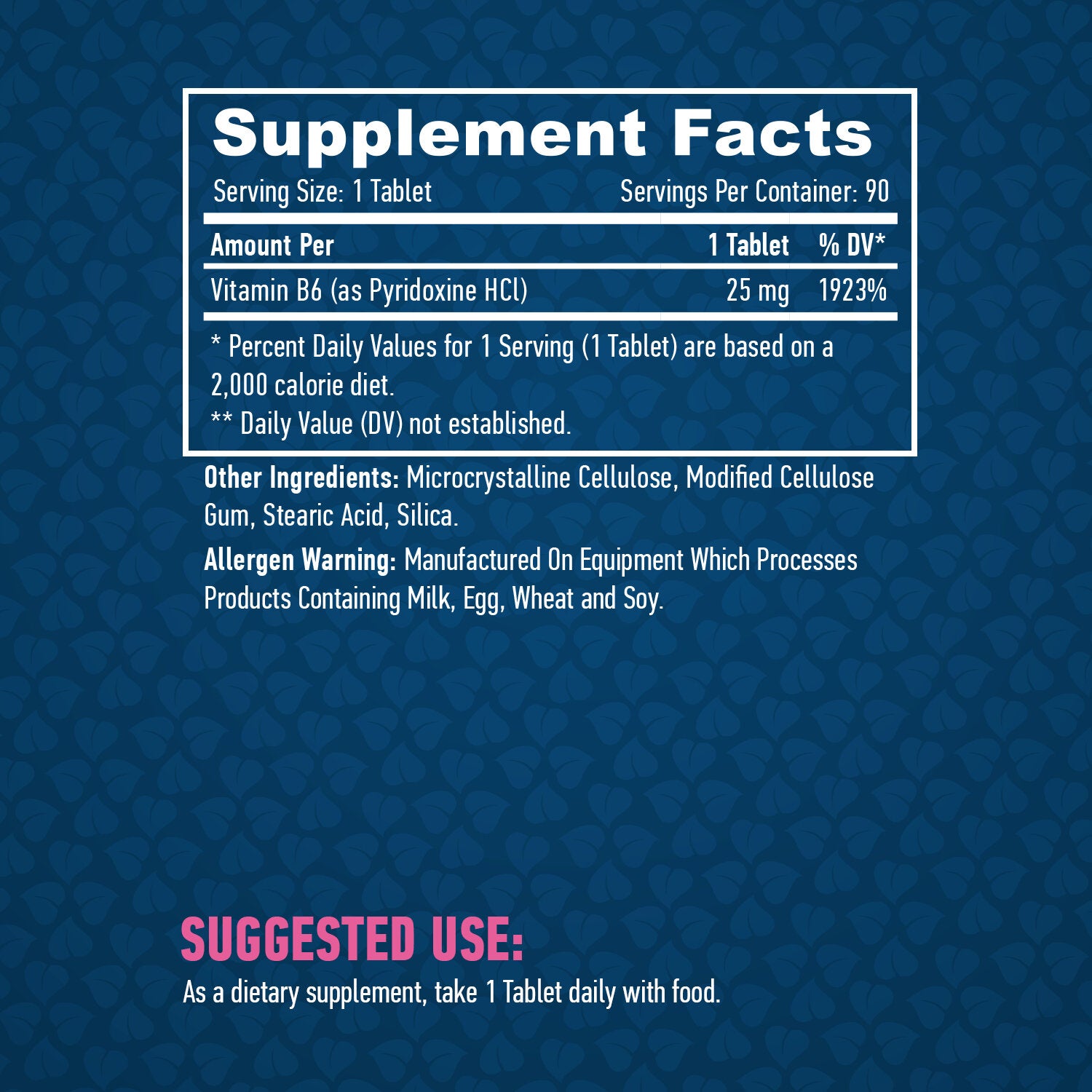 Внимание: Преди започване на прием на витамин B6, консултирайте се с лекар, особено ако имате медицински състояния или приемате лекарства. Продуктът е предназначен за възрастни.