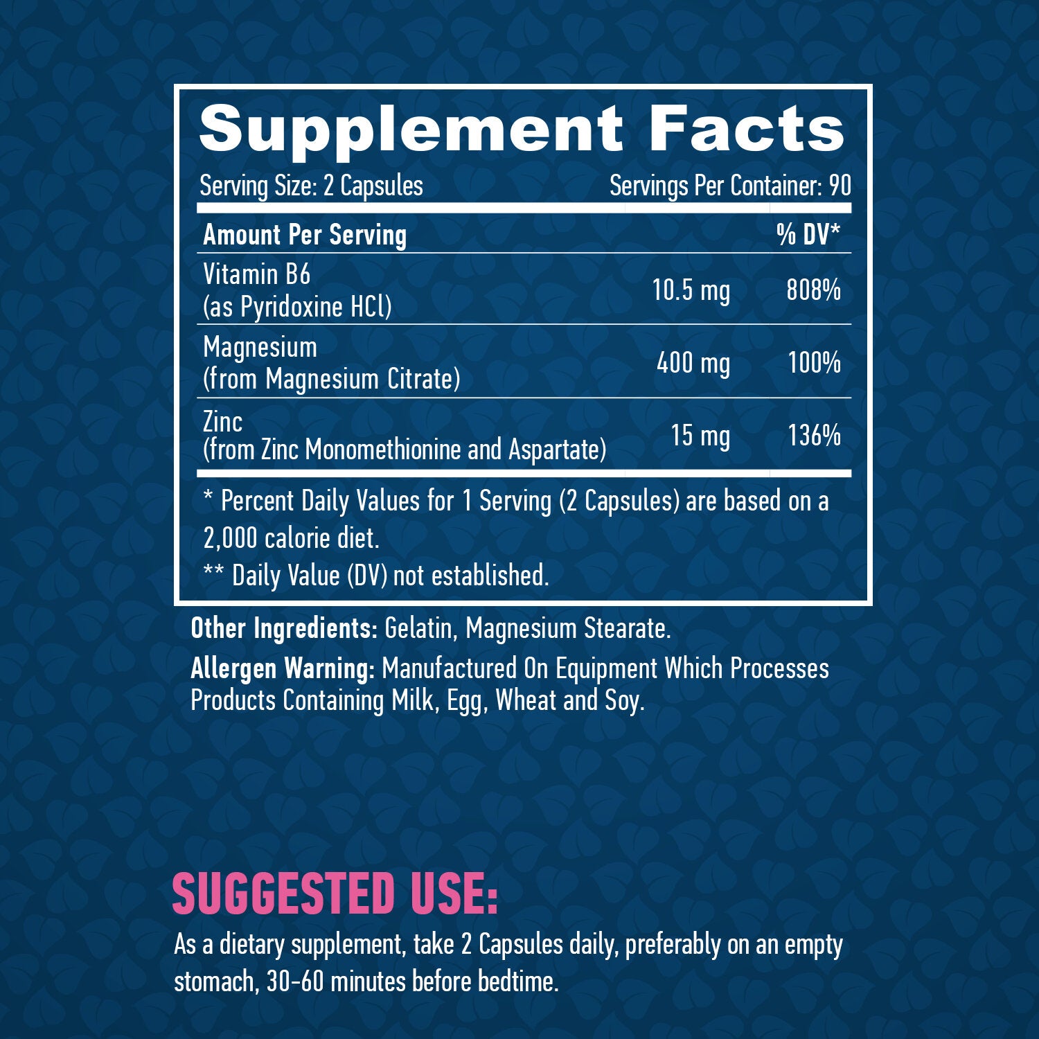 Витамин B6 подобрява усвояването на активните съставки, което увеличава ефективността на продукта. Приемането на ZMA може да помогне за оптимизиране на енергийните нива и да съкрати времето за възстановяване след интензивна физическа активност.