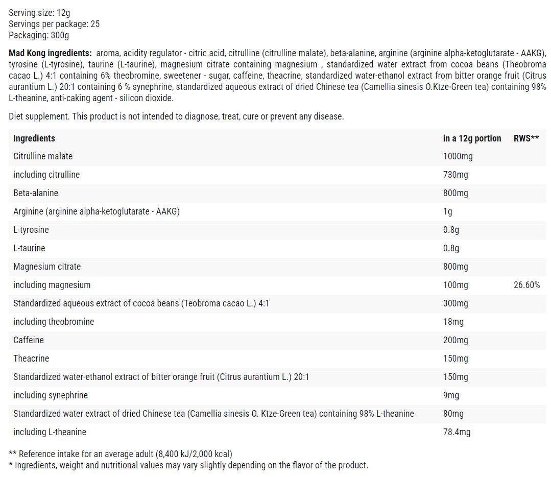 Mad Kong | Never Ending Energy Pre-Workout 300 грама