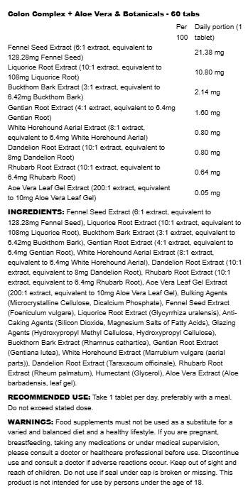 💊 Colon Complex + Aloe Vera & Botanicals - 60 Таблетки – подкрепа за здравето на стомашно-чревния тракт