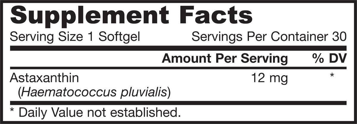 Астаксантин е естествен антиоксидант притежаващ повече от 100 пъти и 10 пъти по голям капацитет за неутрализиране на реактивни кислородни видове (ROS) от витамин Е и бета-каротин, съответно. Подобно на повечето каротеноиди, астаксантин не може да се превърне във витамин А. Смята се, че силният антиоксидантен ефект и възпалително модулиращите му свойства са в основата на неговите клинично наблюдавани ефекти върху кожата, очите и здравето на ставите.
