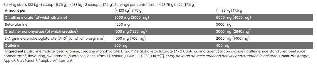 Формулата на SHAABOOM PUMP е наситена с 5000 мг. Бета-аланин и 2000 мг. Цитрулин Малат. Непосредствено след приема на SHAABOOM PUMP ще започнете да усещате тежестите като детски строителни блокчета и ще сте готови да слагата още и още. При пресичането на млечната киселина се получават крампи и мускулна треска. Не ѝ позволявайте да ви дърпа назад - SHAABOOM PUMP съдържа три форми креатин: Монохидрат, Три-креатин малат и Креатин Хидрохлорид, които работят постоянно, за да възстановят и повишават нивата на АТФ.
