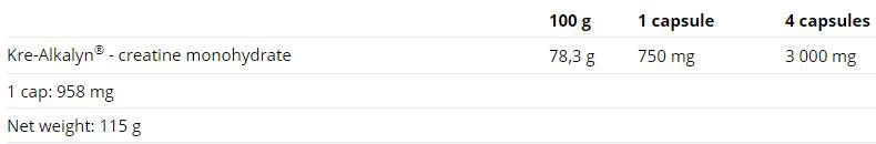 KRE-ALKALYN®1500 е съвременна патентована форма на креатин с отлична стабилност и усвояване от организма. 1500 мг. креатин в доза. Подходяща за спортисти, които се стремят към увеличаване на мускулния обем и сила.