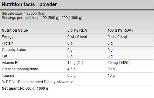 Xtreme Creatine предлага и една малка екстра. Към всяка доза има добавени достатъчно количество таурин. Тауринът подобрява скоростта на усвояване на креатина и засилва неговото действие. Именно заради това Xtreme Creatine трябва да е вашият избор!