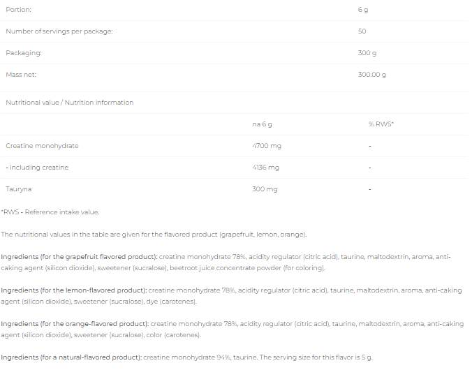 • С добавен таурин: Тази съставка подобрява усвояването на креатина, което ви позволява да извлечете максимална полза от продукта.