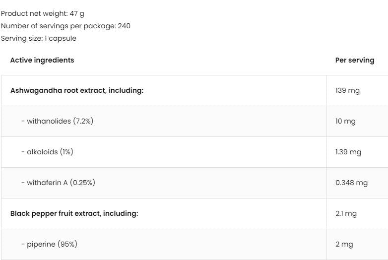 Ashwagandha Root Extract 139 mg 240 капсули