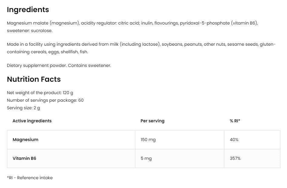 Magnesium Malate Powder 150 mg - 120 грама