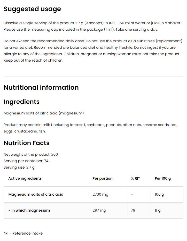Предупреждения: Не се препоръчва за хора с бъбречни заболявания или хипермагнезиемия. Консултирайте се с лекар преди употреба, ако имате сериозни здравословни проблеми или приемате лекарства.