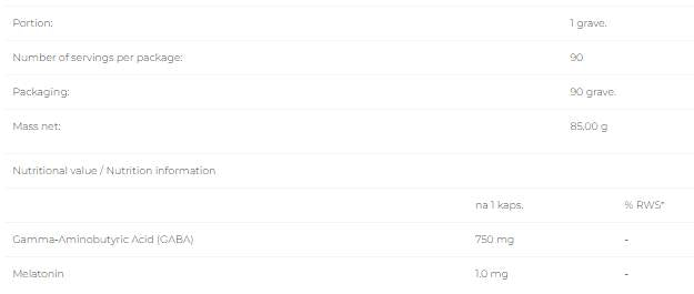 • Съдържа 750 mg ГАБА и 1 mg мелатонин на порция